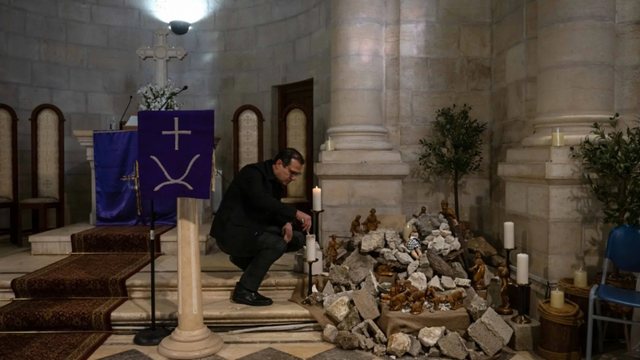 Në vend të dekoreve tradicionale dhe pemës së krishtlindjeve, Kisha e Lindjes së Krishtit, zgjodhi të krijojë një skenë të thjeshtë ku në qendër qëndron Jezusi dhe rreth tij një grumbull rrënojash, që simbolizon qytetin e Gazës. Në një kohë normale, Betlehemi do të ishte një “qytet plot me njerëz, plot turistë”, tha 30-vjeçari Abood Suboh, një tregtar i zonës i cili theksoi se ky vit është një nga më të këqijtë që po përjeton vendi.