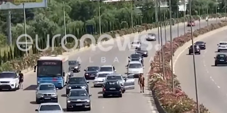 Euronews Albania ka siguruar një video që tregon se si një automjet futet kundërvajtje duke shkaktuar kaos tek automjetet që vinin përballë me njërën nga të cilat përplaset.
