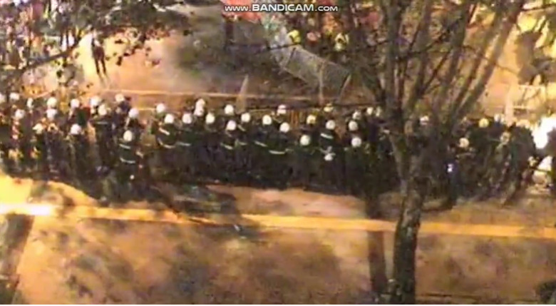 Demonstruesit kanë sulmuar me shishe, pishtarë dhe sende të tjera të forta. Informacionet e para raportonin për përdorim të gazit lotsjellë, por kjo u hodh poshtë nga informacione të mëtejshme.