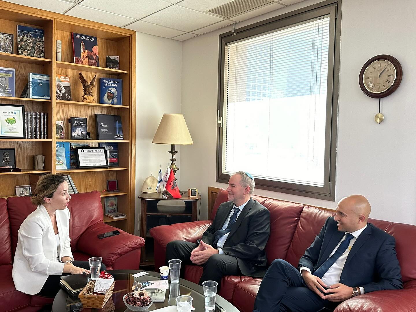 Ambasadorja e Shqipërisë në Izrael Meri Kumbe pati kënaqësinë të mirëpres në Ambasadën e Republikës së Shqipërisë, Drejtorin e Përgjithshëm të Ministrisë së Bashkëpunimit Rajonal të Izraelit, z. Gilad Shadon dhe ekipin e tij. Duke diskutuar për marrëdhëniet e veçanta historike mes Shqipërisë dhe Izraelit, diskutuam për mundësitë e thellimit të marrëdhënieve dypalëshe midis vendeve tona 🇦🇱🤝🇮🇱.
