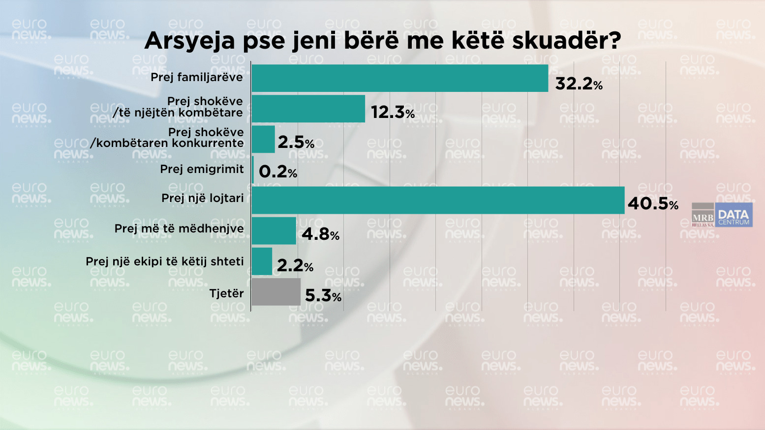 Edhe pse për shumë gjëra ndikohemi nga familja kur vjen fjala për futboll, 51.9% e shqiptarëve pëlqejnë skuadra të ndryshme nga familjarët e tyre. Ndërsa 33% e tyre pëlqejnë të njëjtën skuadër.