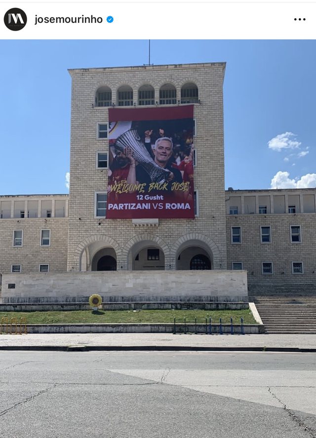 “Faleminderit Tirana që na mirëpret sërish, faleminderit Edi Rama”, shkruan trajneri i Romës Jose Mourinjo në Instagram.