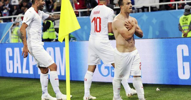 Më poshtë në artikull shpjegohet se “Me këtë gjest, dy lojtarët me origjinë kosovare kishin shprehur mbështetjen e tyre për Kosovën, të cilësuar si “një krahinë jugore serbe” nga Beogradi, i cili nuk e njohu kurrë pavarësinë e shpallur më 17 shkurt 2008. Katër vite më parë mediat Serbët e denoncuan si “një provokim të turpshëm” festimin e golashënuesve të Zvicrës, të cilët u sanksionuan edhe nga FIFA me një gjobë prej 8660 € për “sjellje josportive”, rrëfen e përditshmja franceze.