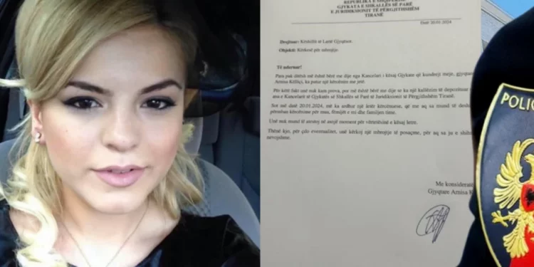Prokuroria pranë Gjykatës së Shkallës së Parë të Juridiksionit të Përgjithshëm, Tiranë, ka regjistruar Procedimin Penal, nr.552 të vitit 2024, për veprën penale të “Kanosje e Gjyqtarit” parashikuar nga neni 317 i Kodit Penal, me kallëzuese Gjyqtaren Arnisa Këlliçi.