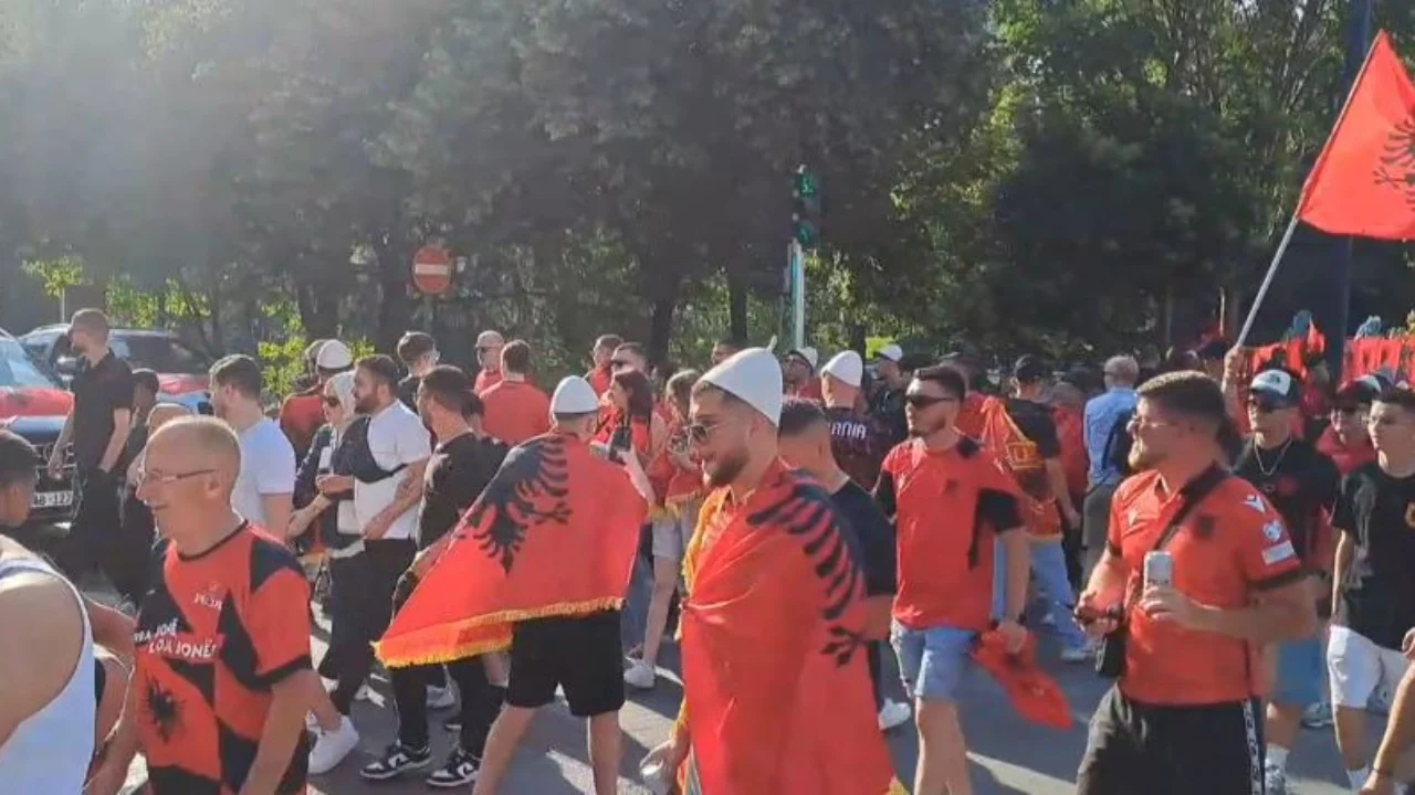 Muzikë me daulle dhe valle kanë shoqëruar mbështetësit e Kombëtares shqiptare, teksa të pranishëm në rrugë janë dhe forcat e rendit, për të shmangur çdo incident të mundshëm.
