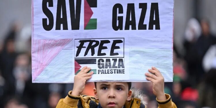 Në një nga marshimet më të mëdha, turma e përbërë nga qindra e mijëra përshkuan qendrën e kryeqytetit britanik, Londër, për të kërkuar nga qeveria e kryeministrit Rishi Sunak thirrjen për një armëpushim.