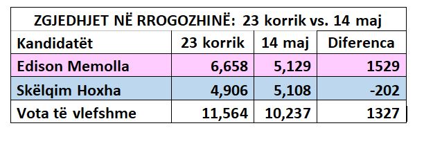 Në Vorë, kandidati socialist fitoi më 14 maj pothuaj 74% të votave të vlefshme, ndërsa në Rrogozhinë vetëm 50.1% të votave. Socialisti Memolla mori më 14 maj pothuaj po aq vota sa ç’kishte marrë vjet, por kësaj rradhe pati përballë një kundërshtar shumë më të fortë, i cili pothuaj e çoi rezultatin në barazim…