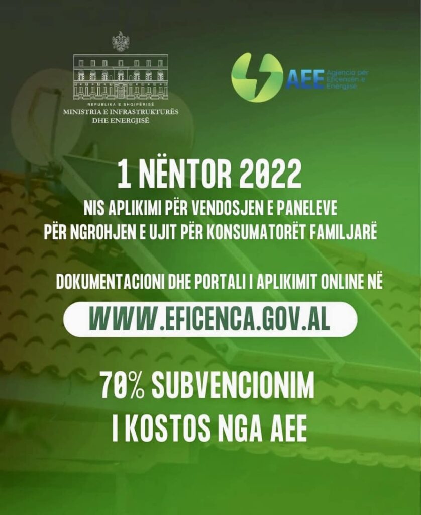 “Qeveria Shqiptare do vazhdojë të mbështesë dhe të mbrojë konsumatorin në këtë situatë krize energjie globale. 70% subvencionim nga Agjencia për Efiçencën e Energjisë për panelet me ngrohje diellore”, shkruan Rama.