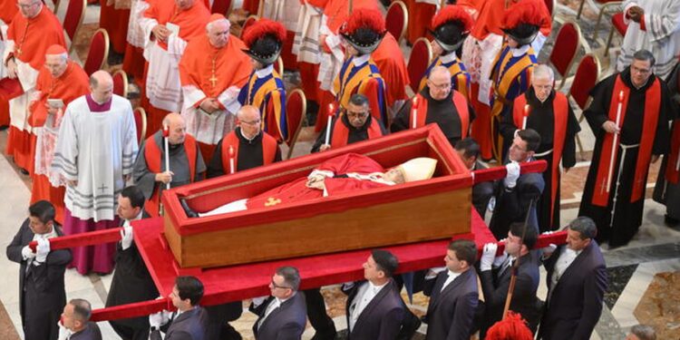 Arkivoli me trupin e Papa Franceskut, i ndarë nga jeta të hënën si pasojë e një goditje në tru dhe arresti kardiak, u transferua në Bazilikën e Shën Pjetrit në një procesion solemn nga rezidenca e tij e Santa Martës në Vatikan.