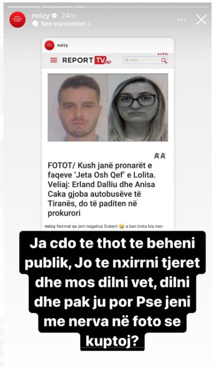 Noizy shpërndan lajmin e Report Tv për dy faqet ‘Lolita’ dhe ‘JOQ’ dhe denoncon: Ja fytyra e shpifësve, normal që jeni negativa
