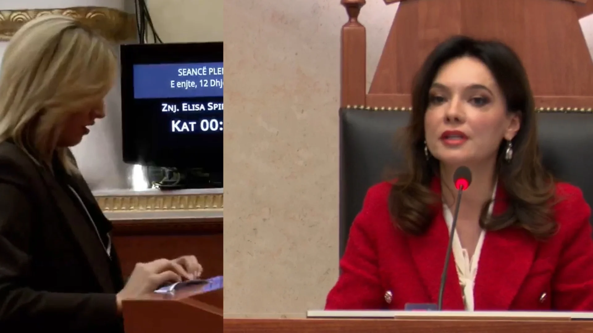 “Zonja Zhupa, uluni në vend dhe mos e prekni foltoren e Kuvendit. Ju lutem Grada hiqeni atë! Nuk është foltorja juaj”, i drejtohet Spiropali-Zhupës.