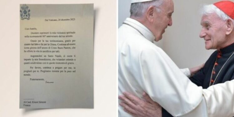 Papa Françesku i ka shprehur afërsinë shpirtërore kardinalit Ernest Simoni me një letër drejtuar këtij të fundit në 60-vjetorin e arrestimit të tij ga regjimi komunist në Shqipëri, duke i uruar përzemërisht Krishtlindjen.