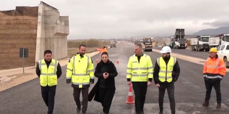 Zëvendëskryeministrja Belinda Balluku e ka nisur vitin 2024 duke inspektuar kantierin e autostradës Thumanë-Kashar, ku ka nisur procesi i asfaltimit dhe realizimi fizik i punimeve ka arritur në 65%.