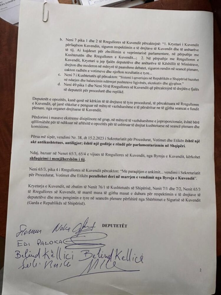 Rama po e përdor Kuvendin duke cënuar të drejtat e përfaqësimit të të gjithë atyre që kanë votuar në Parlament. Është një stuhi që po përfshin cdo ditë e më shumë këtë Kryeministër. Ne kërkojmë që afera “McGonigal” të hetohet dhe të dalin jashtë të gjitha lidhjet kriminale për të cilën janë para përgjegjësisë persona në SHBA. Kryeministri ka marrë këto masa në grup në mënyrë që të zbrazë Parlamentin nga opozita. Kërkojmë që Byroja ta marrë në hetim kërkesën tonë.