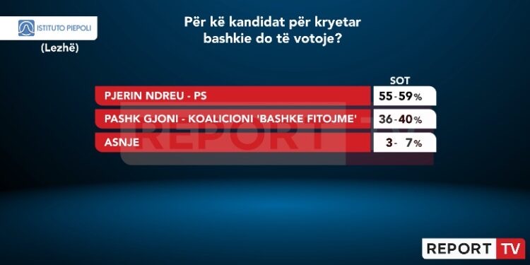 Nëse zgjedhjet do të bëheshin sot, Pjerin Ndreu do të merrte një mandat të dytë në Bashkinë e Lezhës, i cili do të merrte 55-59% të votave.
