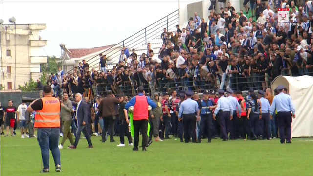 “Më datë 25.05.2023, në përfundim të ndeshjes Bylisi-Tirana, në Rogozhinë, disa tifozë të Tiranës kanë hyrë në fushë dhe kanë tentuar të dhunojnë gjyqtarët e ndeshjes. Shërbimet e Policisë kanë reaguar menjëherë duke shoqëruar këta shtetas, për të cilët po kryhen veprimet e mëtejshme procedurale”, njofton policia.