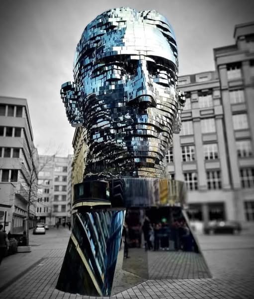 Shikimi i kokës së Franz Kafkës në Pragë shkakton një efekt tjetërsues Plot 42 blloqet inoksi që përbëjnë skulpturën rrotullohen në mënyrë të pavarur falë një motori të brendshëm.