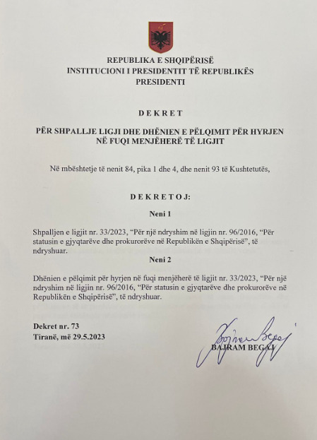 Presidenti Bajram Begaj firmos! Dekretohen ligjet për rritjen e pagave për zyrtarët e lartë dhe administratën