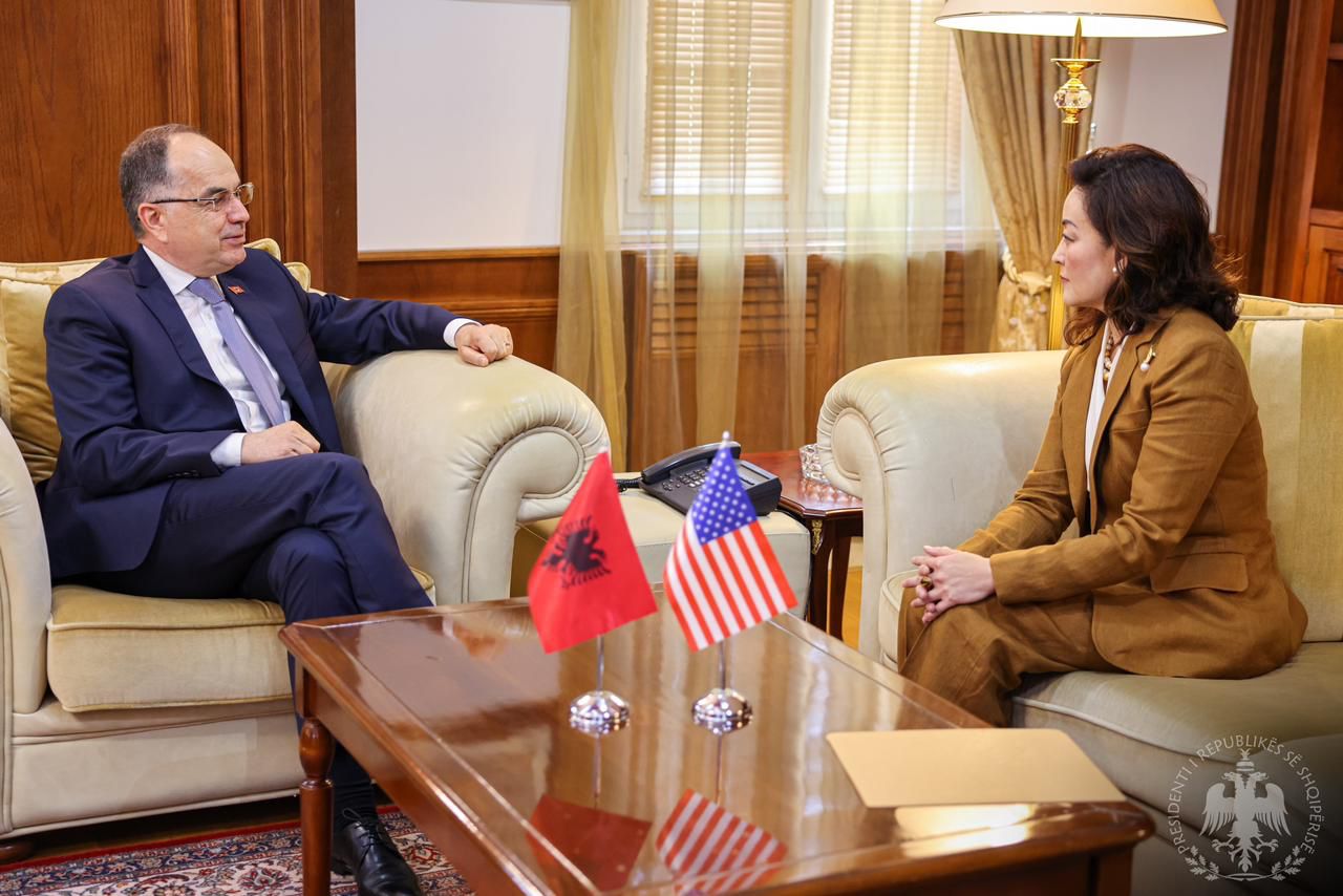 Presidenti Begaj falënderoi Ambasadoren Kim për angazhimin e saj në rritjen e shkëmbimeve tregtare mes vendit tonë dhe SHBA-së, por edhe për rritjen e aktivitetit të bizneseve amerikane në Shqipëri.