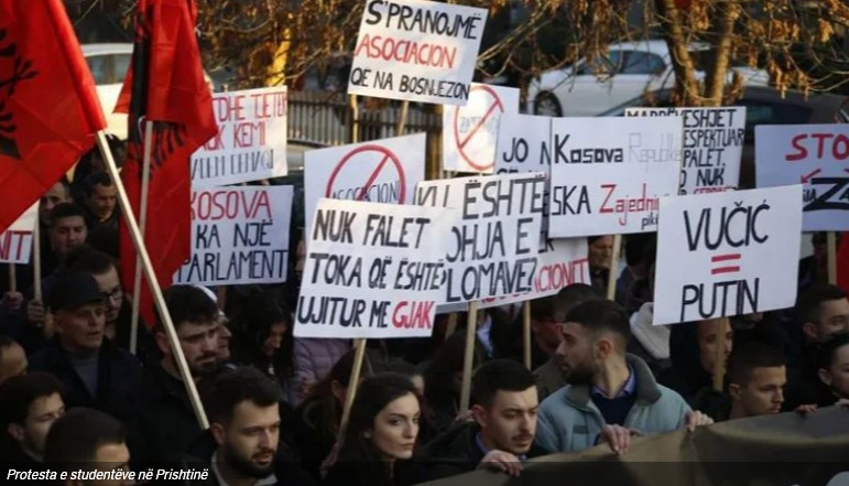 Një numër i madh studentësh në Kosovë kanë dalë në protestë ditën e sotme kundër marrëveshjes së Asociacionit të komunave me shumicë serbe.