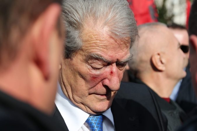 Kreu i Partisë Demokratike, Sali Berisha pas incidentit ku u godit me grusht ka dalë ne foltore për të mbajtur fjalimin e parashikuar.