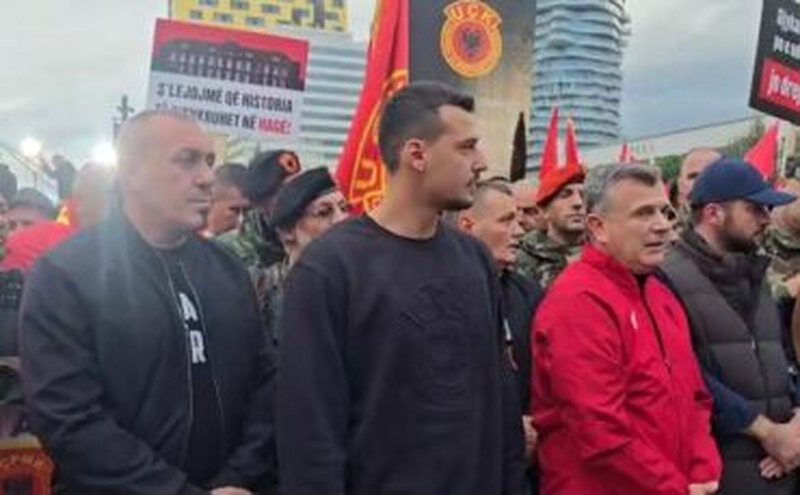 Djali i ish-Presidentit të Kosovës, Hashim Thaçi, Endrit Thaçi është një prej pjesëmarrësve në protestën në mbështetje të UÇK-së në Tiranë ditën e sotme.