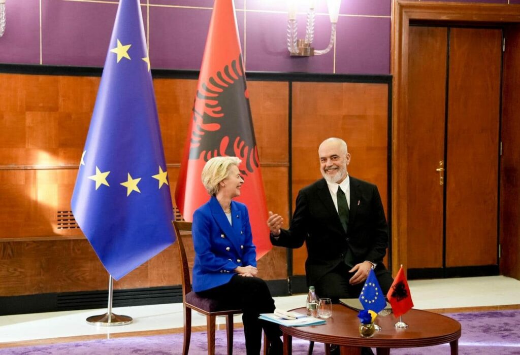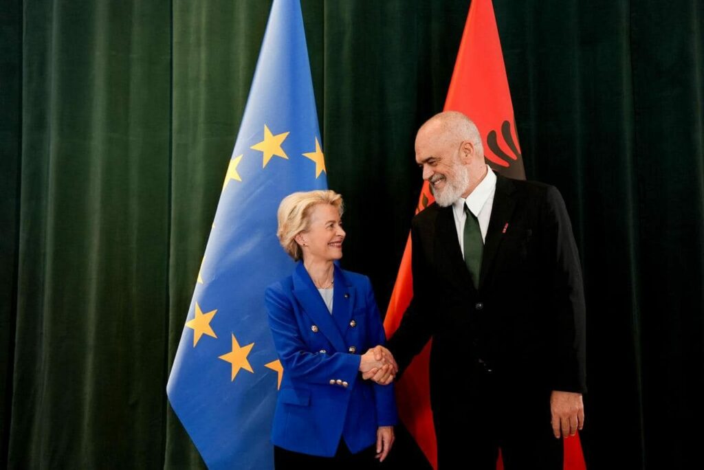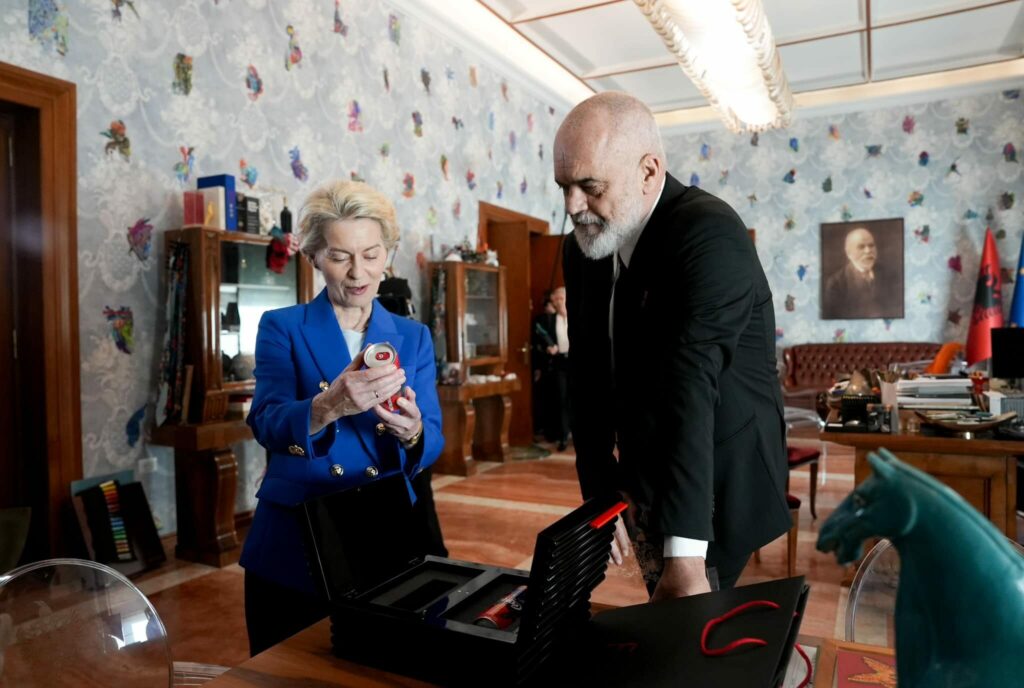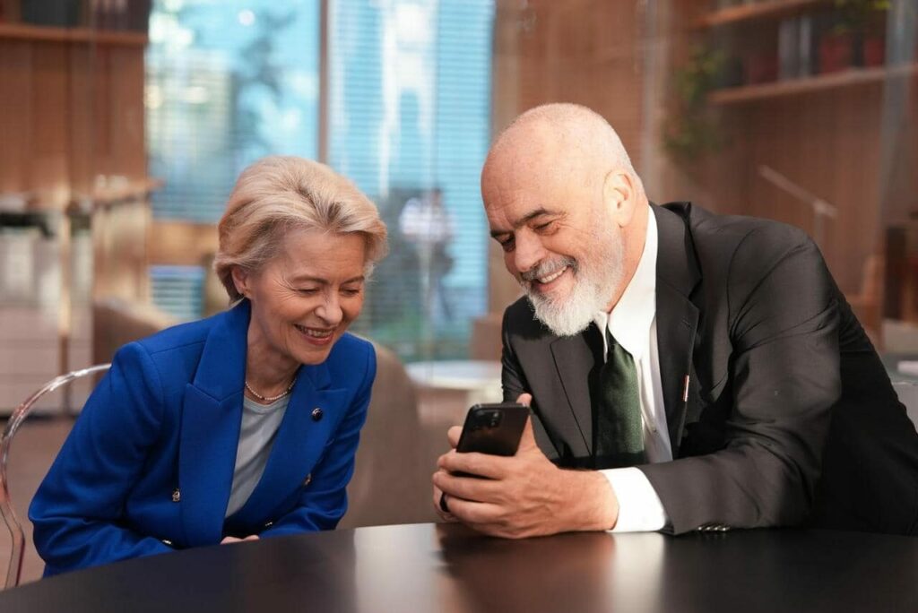 Kryeministri Edi Rama ka ndarë foto nga vizita e presidentes së Komisionit Europian, Ursula von der Leyen, në Tiranë.