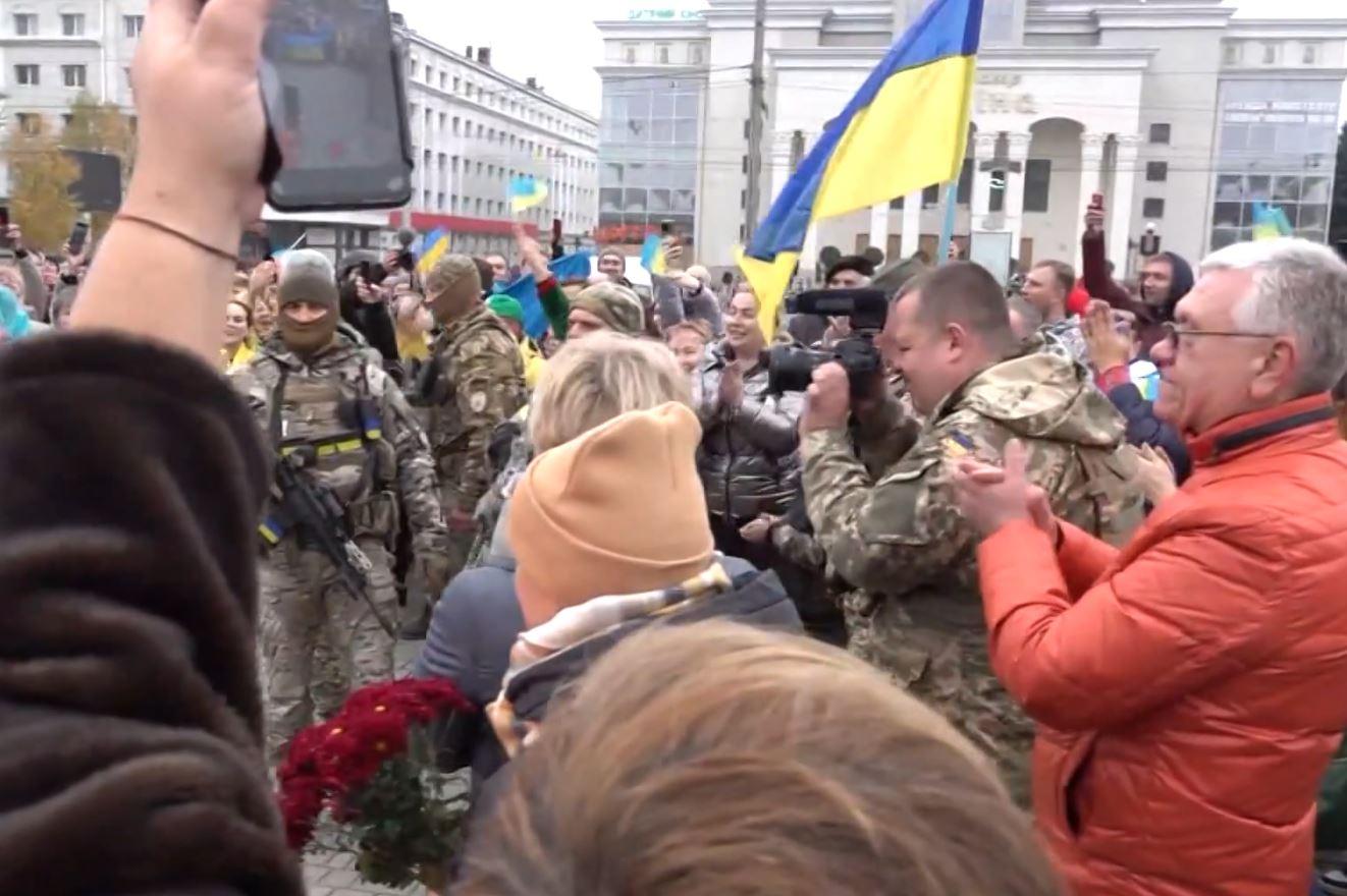 Në llogarinë e tij në Twitter ai ka shpërndarë disa pamje ku shihet një gazetar i “Sky News” që merr përqafime nga banorët ukrainas, teksa po raportonte në periferi të Khersonit të çliruar.