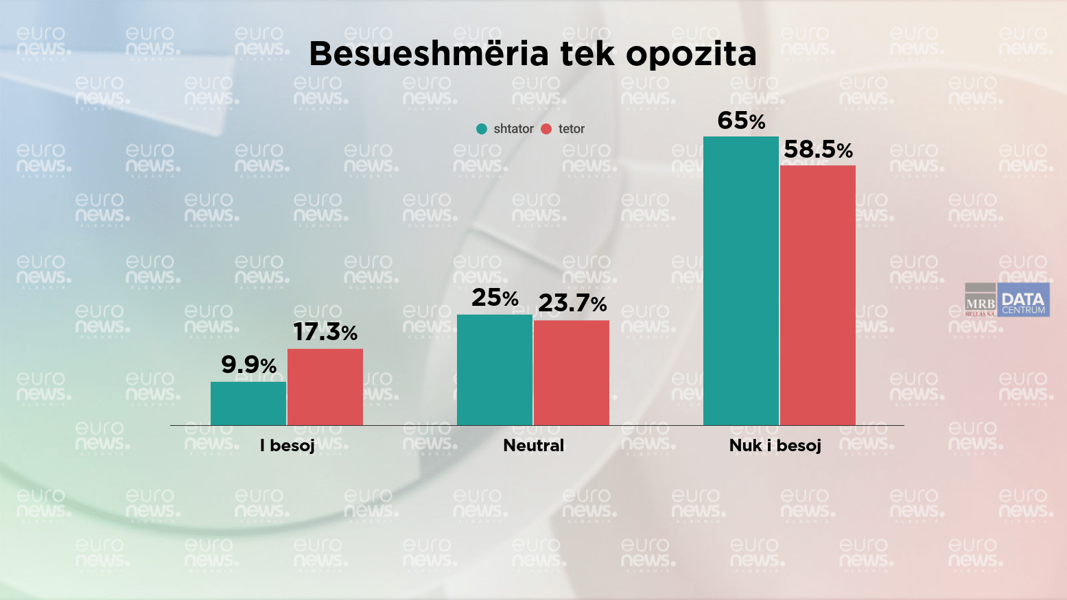 Sipas matjeve të kryera nga Barometri në Euronews Albania në muajin shtator besueshmëria e votuesve të PD tek opozita ishte 9.9%, ndërsa në muajin tetor ka shkuar 17.3%.