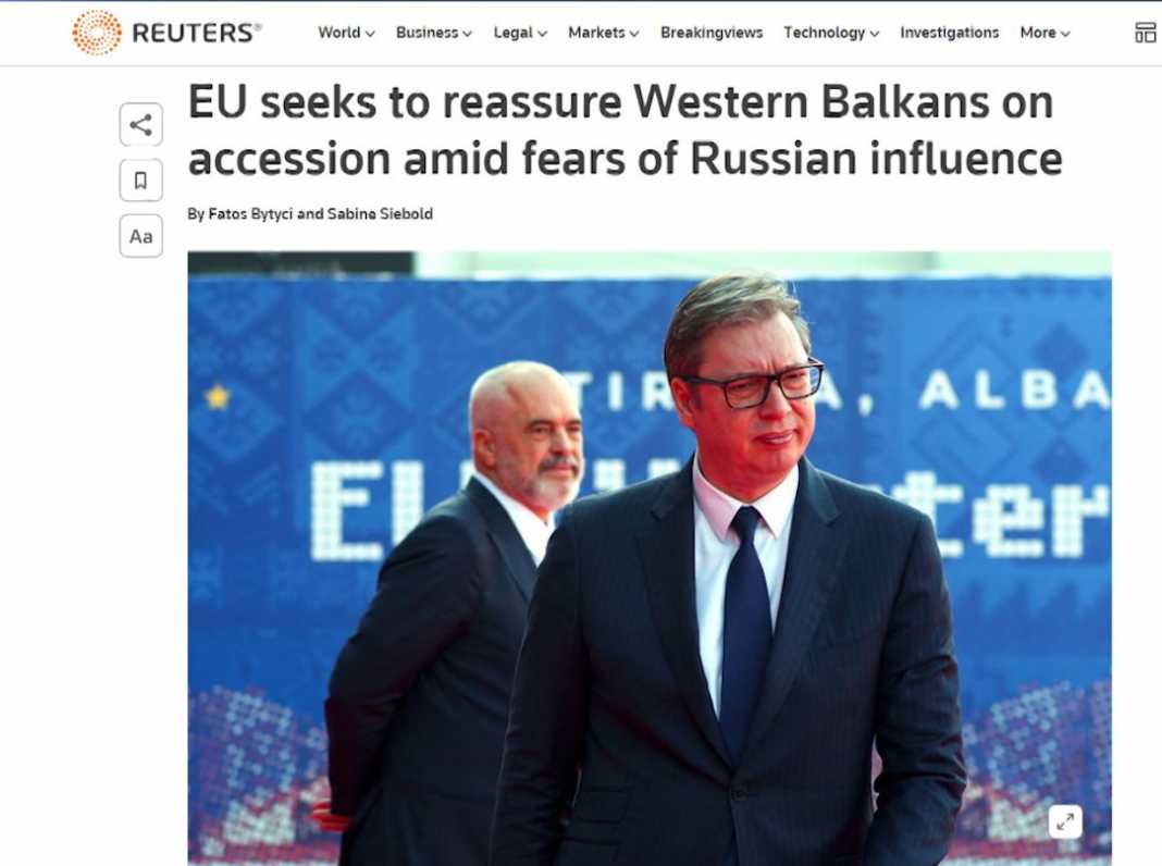 Ndërsa agjencia e lajmeve “Reuters” e ka publikuar lajmin me titullin “BE përpiqet të garantojë vendet e Ballkanit Perëndimor për anëtarësimin nga frika e influencës ruse”.