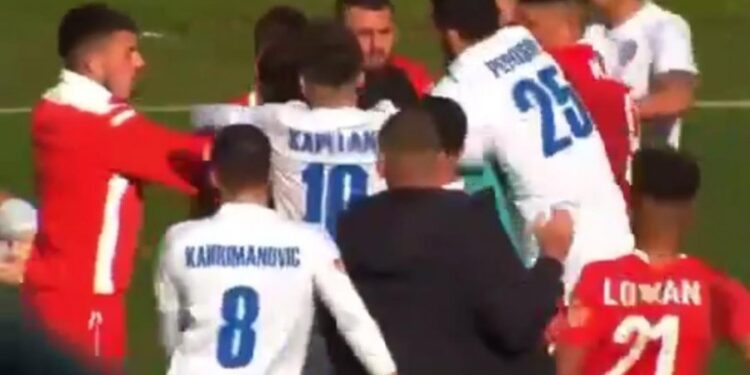 Në një zënkë ku u përfshinë pak a shumë të gjithë, protagonistë u bënë edhe stafet e skuadrave apo edhe persona të cilët zbritën nga tribuna, duke krijuar momente kaosi që zgjati disa minuta.