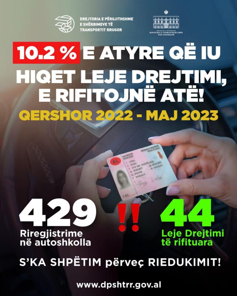 “Për ata që ne i konsiderojmë kontingjent shkelësish të rëndë të rregullave të qarkullimit, përsëritës në sjellje që rrezikojnë ata vetë dhe të tjerët në rrugë, që me aktet e reja në fuqi për të rifituar të drejtën e patentës duhet të regjistrohen nga e para në Autoshkollë e t’i ri-nënshtrohen testit teori-praktikë” reagoi sot Drejtoria e Transportit.