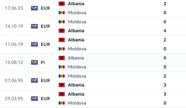 Në 6 duelet e mëparshme kundër Moldavisë, Shqipëria ka regjistruar 5 fitore dhe një barazim, në miqësoren e gushtit të vitit 2012 në Shqipëri. Ndeshje që përfundoi në barazim pa gola.