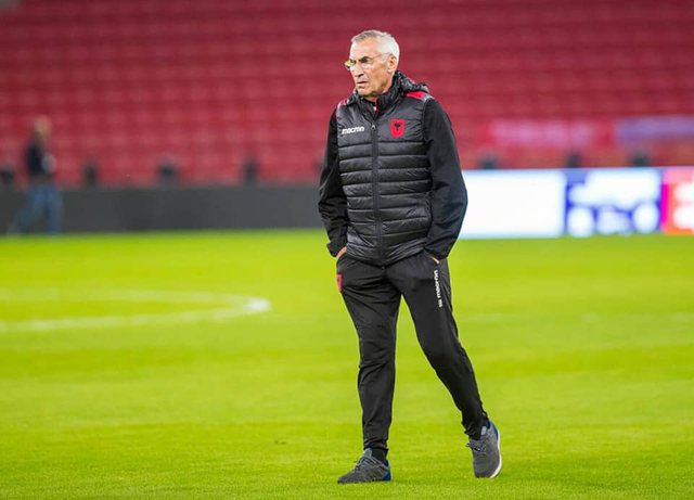 Trajneri i dytë më i vjetër në botë, pas Mirkea Luçeskut që është disa muaj më i madh në moshë, u konfirmua në stolin e Shqipërisë në prill të vitit 2019-të, ku zëvendësoi të larguarin Kristian Panuçi, që e mbylli aventurën në Tiranë pas humbjes 0-2 me Turqinë në “Loro Boriçi”, ku i pranishëm në stadium ishte edhe pasuesi i tij, Edoardo Reja që u zyrtarizua pak kohë më pas.