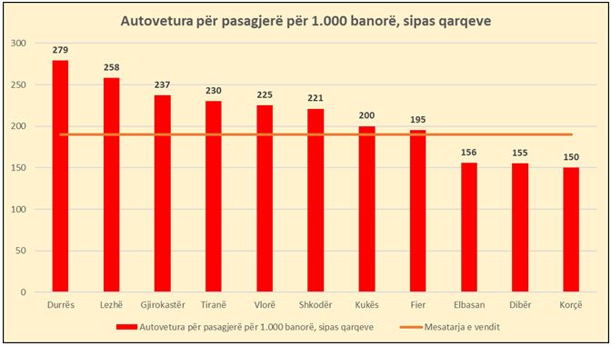 Në vitin 2021, numri i autoveturave për pasagjerë për 1.000 banorë është 212 krahasuar me 190 në vitin 2020 duke u rritur me 11%.