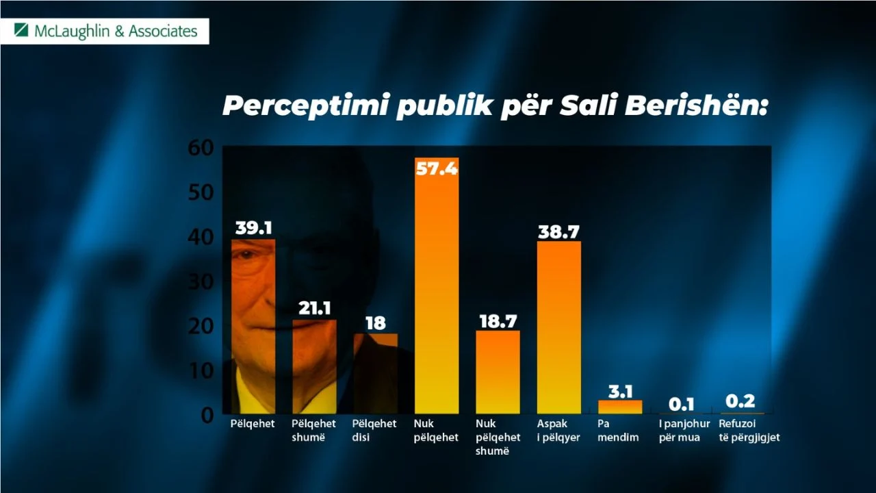 57.4% e qytetarëve shprehen se nuk e pëlqejnë kryedemokratin, ndërkohë që 38.7% e konsiderojnë si “aspak të pëlqyer”.