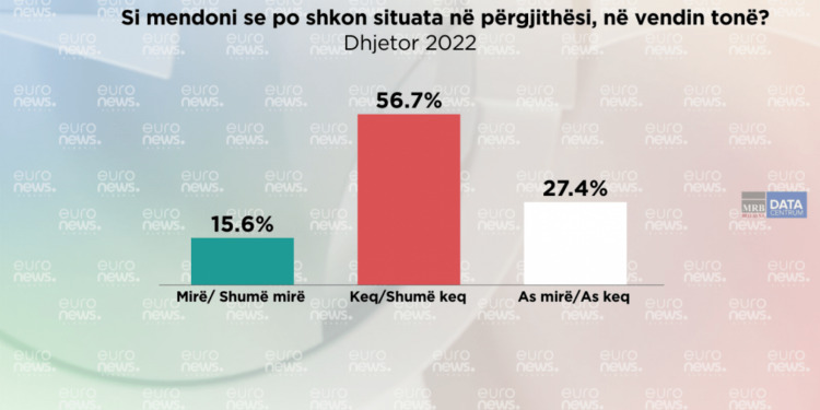 Qershori 2022 ka qenë muaji ku numri i atyre që mendojnë negativisht për situatën ekonomike ka qenë më i vogël me 57%. Në shtator, numri i të pakënaqurve rritet në 69.3%, në tetor shkon 80.2% ndërsa në dhjetor ka serish një rritje në 62.8%.