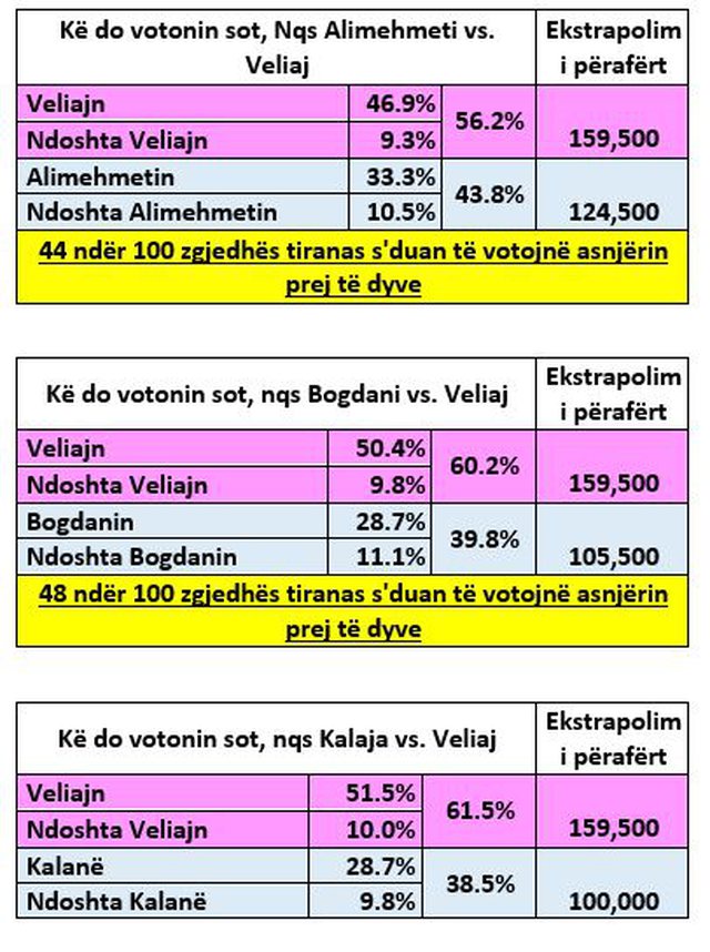 SONDAZHI: Alimehmeti vetëm 33%, Këlliçi, kandidati më konkurrues përballë Veliajt! Sa vota marrin Bogdani e Kalaja?