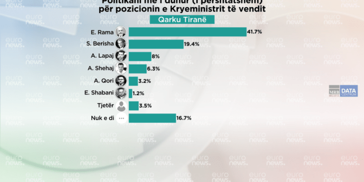 Barometri Euronews – Albania ka zhvilluar matjen e parë zgjedhore për Qarkun e Tiranës. Metodologjia e përdorur është sërish kampion rastësor i shtresëzuar dhe madhësia e kampionit ka qenë 1000 qytetarë të pyetur në gjithë territorin e Qarkut Tiranë, ballë për ballë. Periudha kohore e mbledhjes së të dhënave për matjen e parë zgjedhore të Qarkut Tiranë, të Barometrit Euronews-Albania është 15-25 Shkurt 2025.