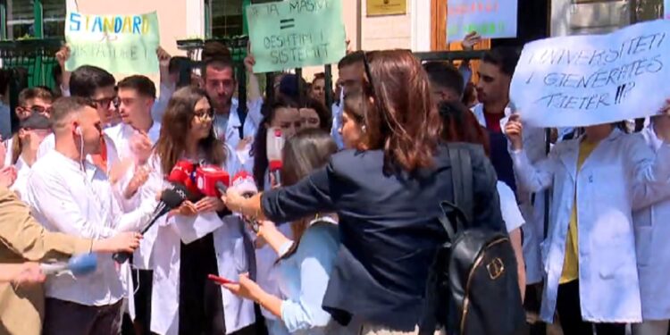 Studentët e Fakultetit të Mjekësisë po zhvillojnë protestë pasi kundërshtojnë draftin për të lidhur kontratë pune në Shqipëri pas përfundimit të studimeve.