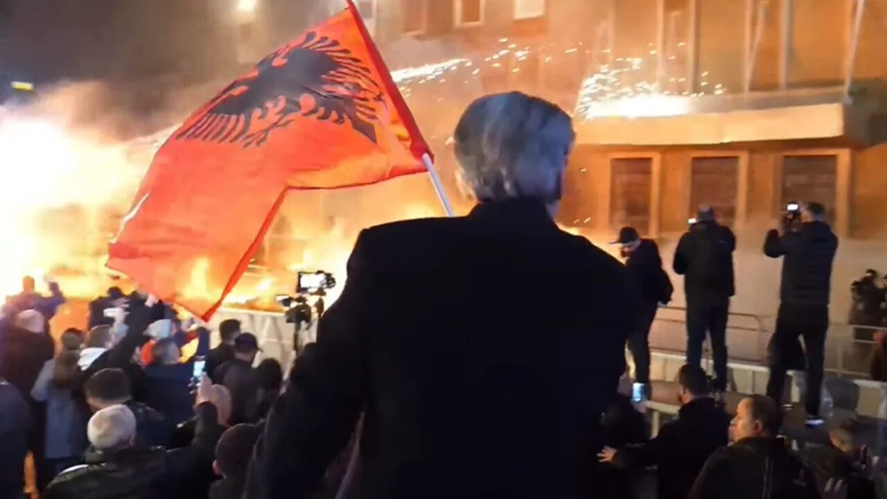 Protestuesit e mbledhur në tubimin e thirrur nga PD-ja, filluan të godasin godinën e Kryeministrisë me bomba molotovë dhe fishekzjarrë.