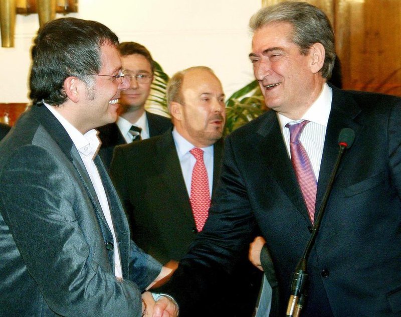 Balla, në fotografi, shihet duke shtrënguar dorën me Sali Berishën, kurse në sfond është Fatos Nano duke ikur.