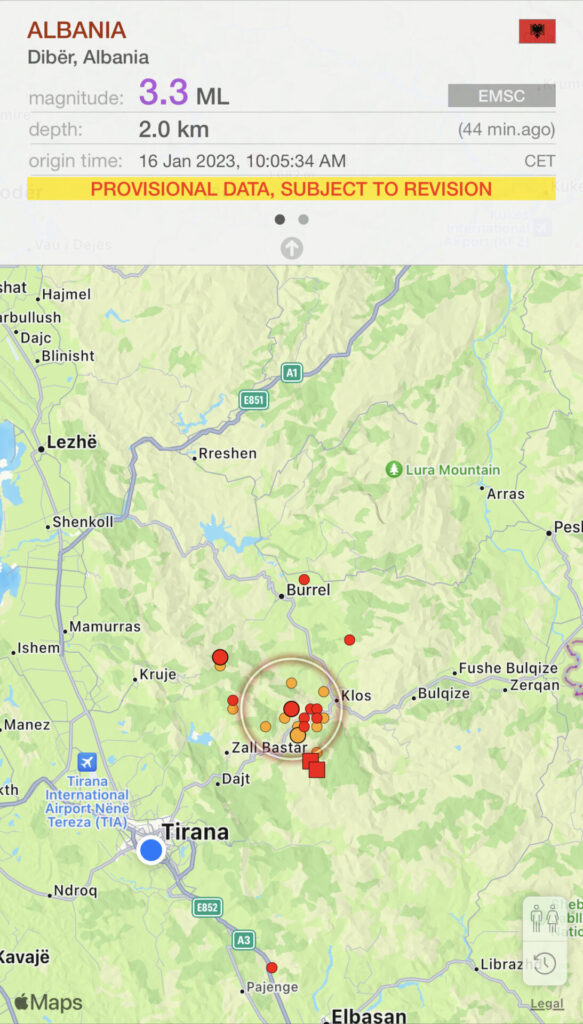 Tërmeti 3.3 ballë ka qenë më i forti i mëngjesit të sotëm por vlen të kujtohet se ka pasur dhe pasgoditje me magnitutë më të vogël nga 2 deri në 2.6 ballë të shkallës Rihter.