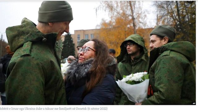 Ukraina liroi të dielën disa ushtarakë të kapur rob që ishin bërë pjesë e forcave ruse në pjesën e pushtuar të rajonit Donetsk. 19 ushtarakët, të dorëzuar në kuadrin e një shkëmbimi robërish mes Rusisë dhe Ukrainës, u pritën nga të afërmit e tyre.