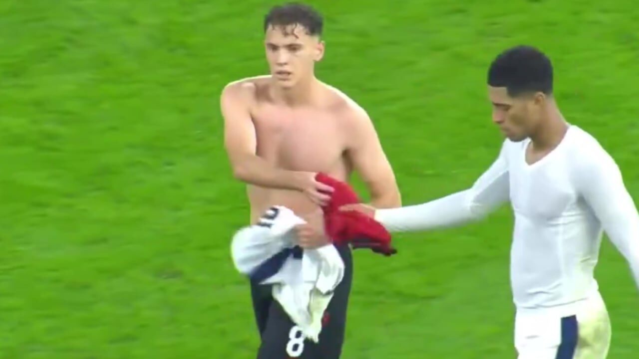 Sapo arbitri sinjalizoi fundin e pjesës së parë, kamera kapën momentin kur Kristjan Asllani i kërkoi Bellingham-it të ndërrojnë fanellat, me anglezin që pranoi menjëherë. Ky veprim, i kryer në mes të ndeshjes, irritoi një pjesë të mirë të tifozëve anglezë, të cilët shpërthyen në rrjete sociale.