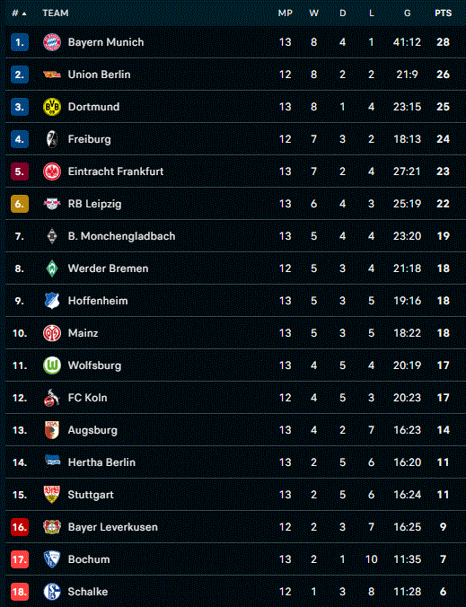 Bundesliga gjermane e futbollit është në javën e 13-të.