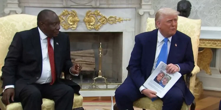 Incidenti ndodhi në Zyrën Ovale, ku u zhvillua takimi mes Presidentit të Afrikës së Jugut, Cyril Ramaphosa dhe Donalad Trump. Ky i fundit i një prezantim video të udhëheqësit të opozitës së krahut të majtë Julius Malema duke bërtitur sloganin kontrovers anti-aparteid “Vritni Boerët!”. Presidenti gjithashtu pretendoi se videoja zbuloi një varr masiv të afërsisht një mijë afrikano-afrikanëve të bardhë, të cilët Trump këmbënguli se ishin vrarë në konfiskime tokash të bazuara në racë.