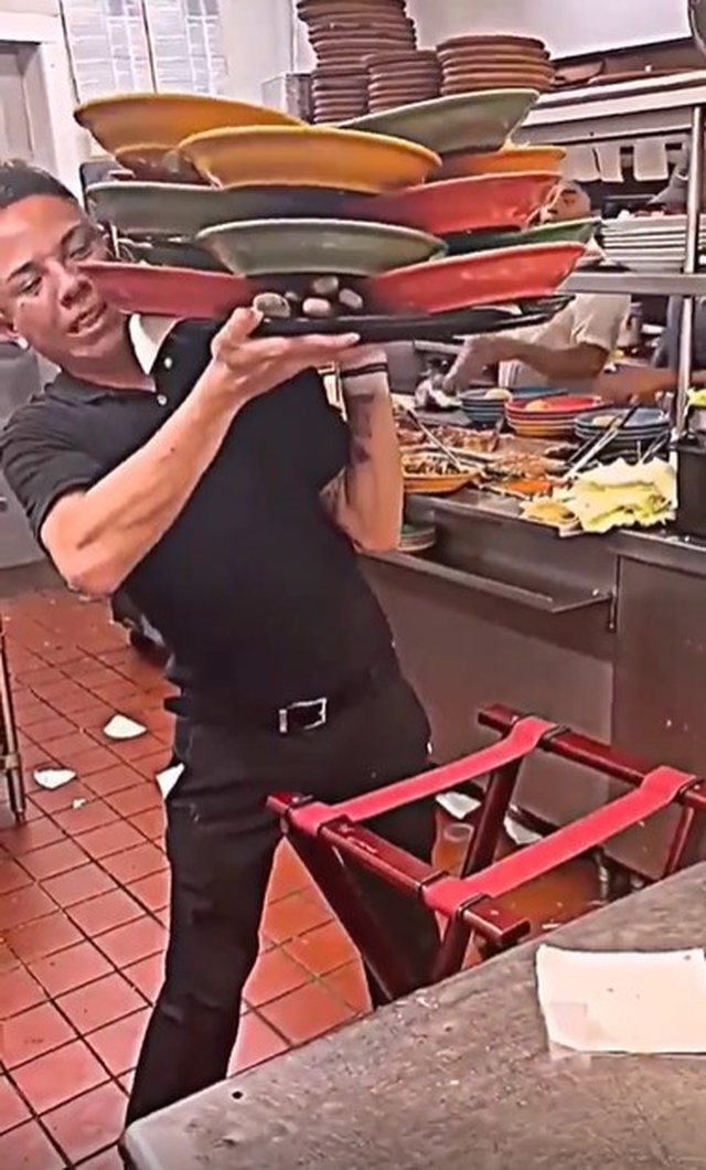 VIDEO: Ngre një duzinë me pjata njëkohësisht, kamarieri “pushton” rrjetet sociale