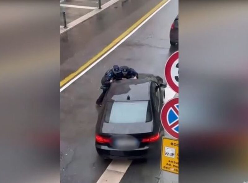 Në videon e publikuar nga mediat italiane shihet makina që nuk i ka ndaluar urdhrit të policisë.