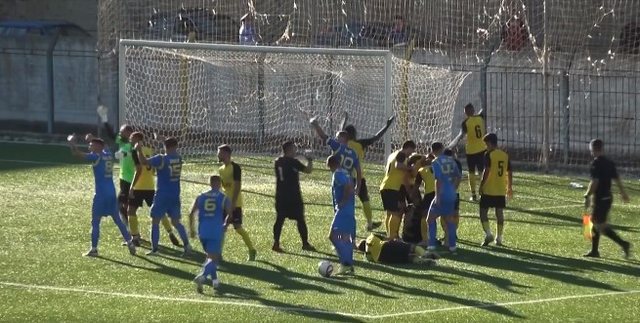 Gjyqtari Xhulio Agolli nuk akordoi penallti për Delvinën dhe në momentet e tensionit që vijuan pas këtij vendimit, nga tribunat fluturuan objekte me një prej tyre që goditi në kokë gjyqtarin duke e lënë të gjakosur në tokë.video
